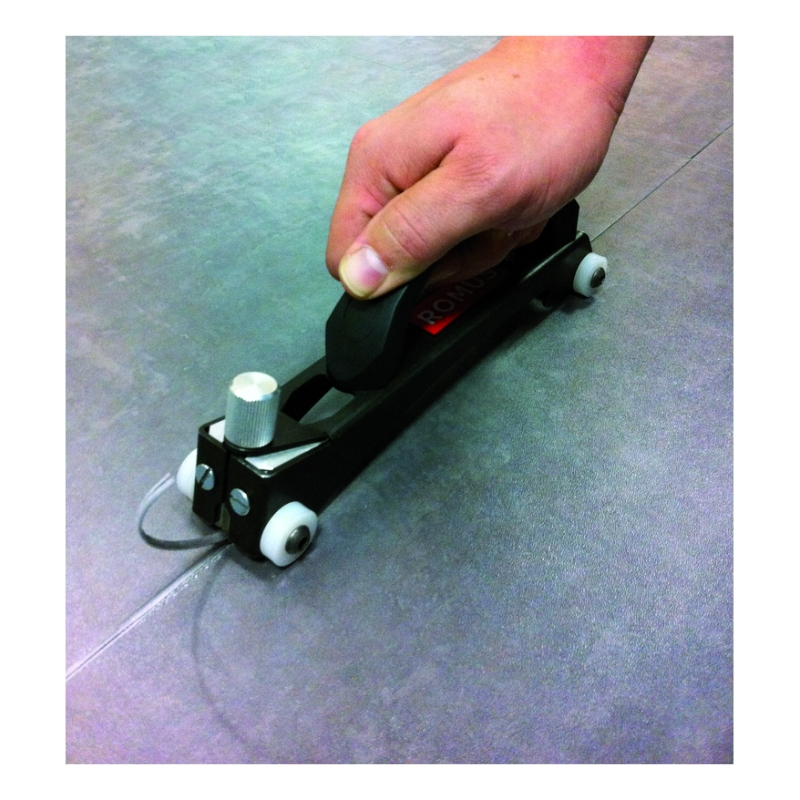 Linea Groover firmy Romus to profesjonalna frezarka na kółkach, stworzona do precyzyjnego wykonywania rowków w spoinach wykładzin PVC i linoleum przed ich zgrzewaniem na gorąco