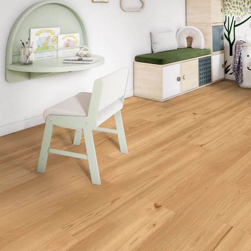 Dzięki cyfrowemu nadrukowi w wysokiej rozdzielczości każdy panel wygląda unikalnie i realistycznie, oddając piękno drewna bez powtarzalności nawet do 12 m². To wybór, który sprawdzi się w przestrzeniach mieszkalnych – od salonu, przez sypialnię, aż po kuchnię czy przedpokój.