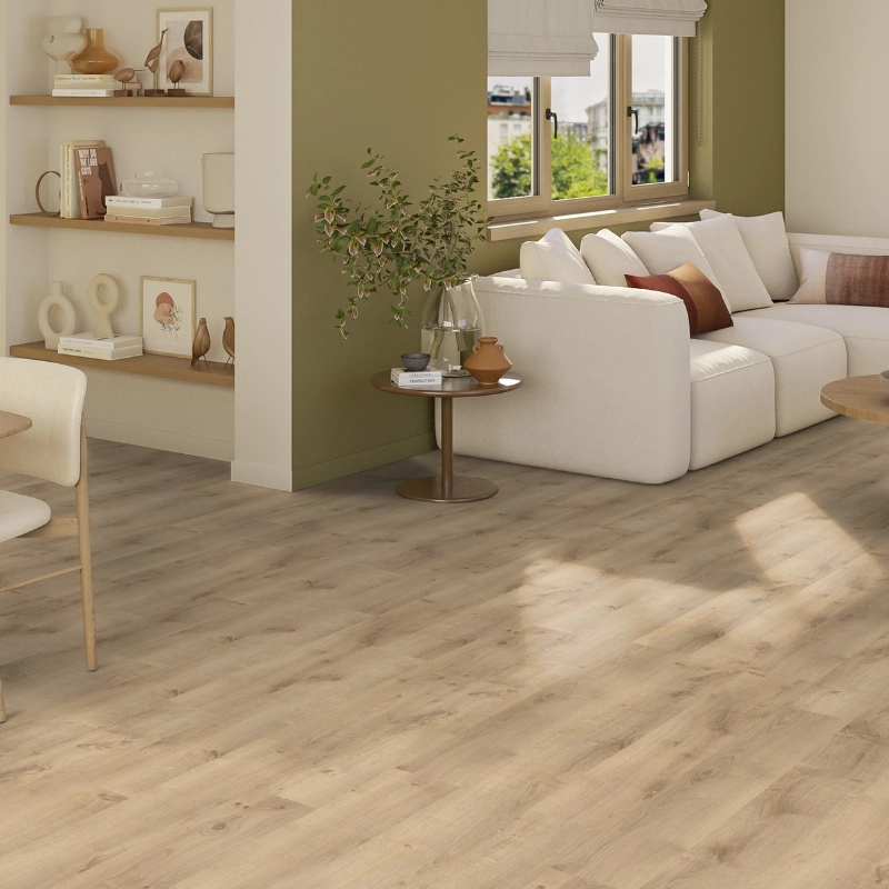 Dzięki zaawansowanej technologii druku cyfrowego panele zachwycają detalami – realistyczne usłojenie, delikatna struktura i matowa powierzchnia tworzą efekt naturalnego drewna, który trudno odróżnić od oryginału. To podłoga, która ociepla wnętrze i nadaje mu domowego charakteru – bez rezygnacji z praktyczności.