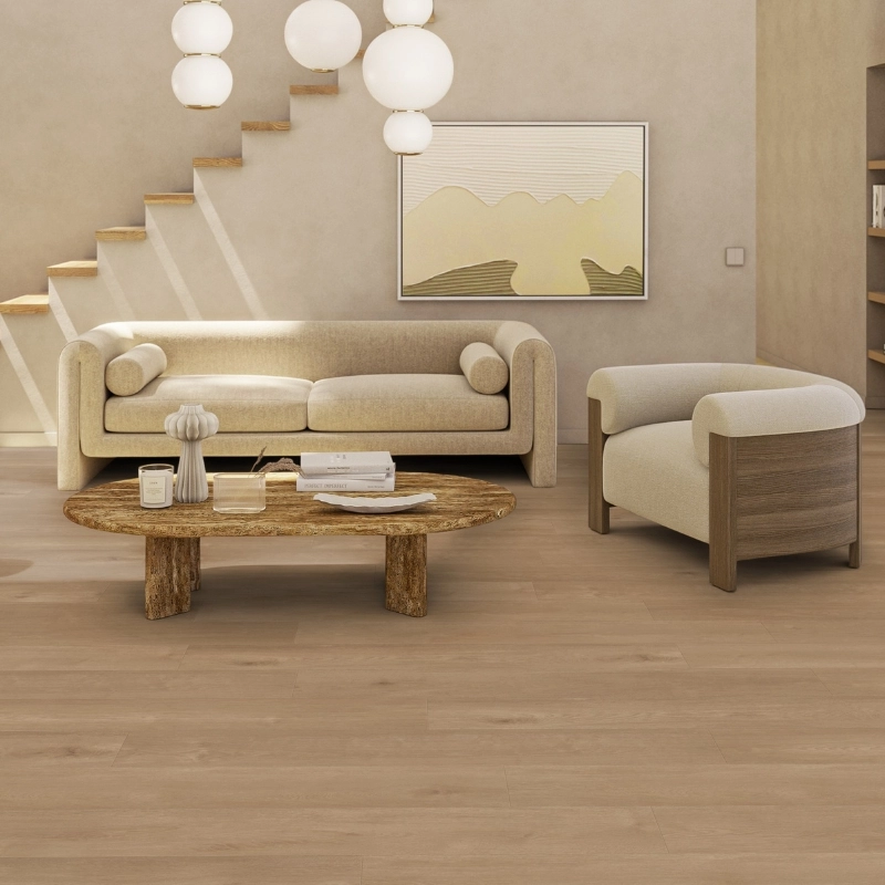 Struktura drewna została odwzorowana z wyjątkową precyzją dzięki drukowi cyfrowemu w wysokiej rozdzielczości. Matowe wykończenie oraz fazowanie 4V dodają całości autentycznego wyglądu i elegancji. To podłoga, która robi wrażenie i buduje atmosferę wnętrza.