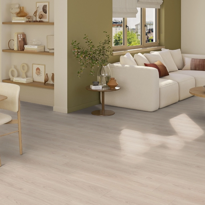 Panele winylowe Tarkett iD Inspiration 55 Authentics Pearl Oak Latte 24513099 to esencja przytulności zamknięta w desce podłogowej. Delikatny, mleczno-beżowy ton dębu Latte wprowadza do wnętrza równowagę, spokój i ponadczasową elegancję – idealną dla salonów, sypialni czy przytulnych biur domowych.