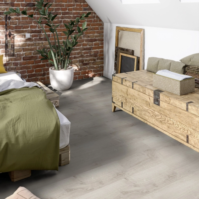Wzór Rustic Oak Light Grey został stworzony z dbałością o każdy detal – czterostronne fazowanie podkreśla krawędzie desek, a matowe wykończenie i wysoka jakość nadruku sprawiają, że podłoga wygląda autentycznie i stylowo. To doskonały wybór zarówno do nowoczesnych mieszkań, jak i przestrzeni komercyjnych z nutą skandynawskiej estetyki.