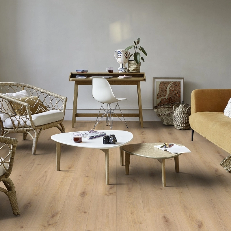 Panele winylowe Tarkett iD Inspiration Click Solid 30 Authentics Delicate Oak Almond 24627092 to idealny wybór, jeśli oczekujesz podłogi, która łączy łatwość montażu, wytrzymałość i styl. Dekor „Delicate Oak Almond” prezentuje delikatny, jasny dąb w odcieniu migdałowym – wnętrze zyskuje przytulność, lekkość i elegancję. Ciepła tonacja drewna sprawia, że przestrzeń staje się bardziej otwarta, a meble w kontrastujących kolorach (czerni, stali, betonie) zyskują jeszcze wyraźniejszy charakter.