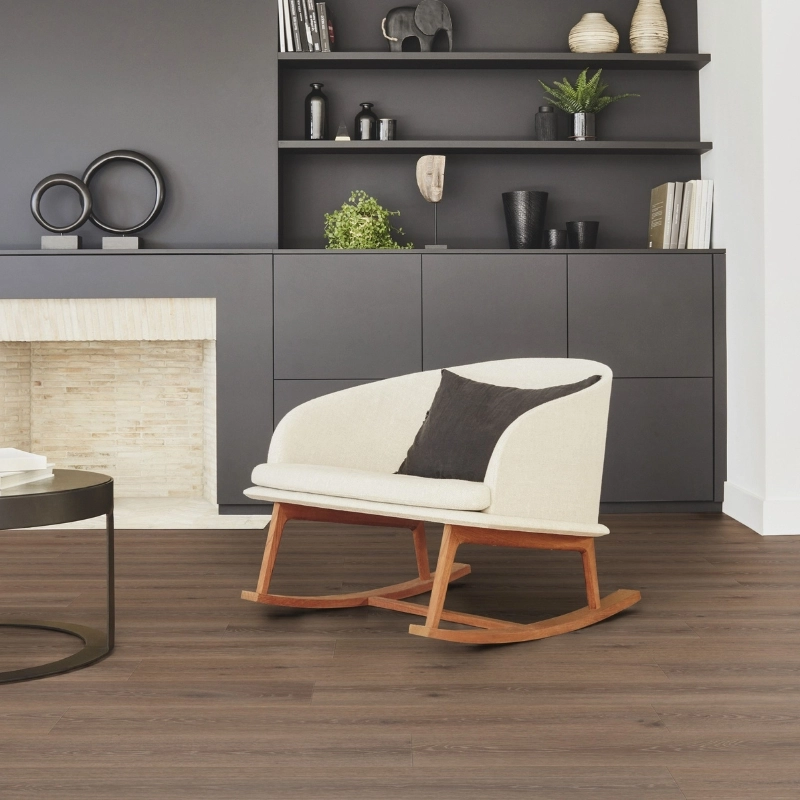 Panele winylowe Tarkett iD Inspiration Click Solid 55 Authentics Highland Oak Arabica 24616088 to znakomity wybór dla tych, którzy pragną podłogi łączącej autentyczny wygląd drewna z wysoką trwałością i łatwym montażem. Dekor „Highland Oak Arabica” prezentuje głęboką, ciepłą barwę dębu z subtelną, naturalną strukturą słojów co dodaje wnętrzu przytulności i szlachetnego charakteru. Dzięki temu podłoga doskonale komponuje się z drewnianymi meblami, ciepłą kolorystyką ścian oraz klasycznymi dodatkami a wnętrze zyskuje ponadczasowy klimat, który sprawdza się zarówno w salonie, jadalni jak i w sypialni.