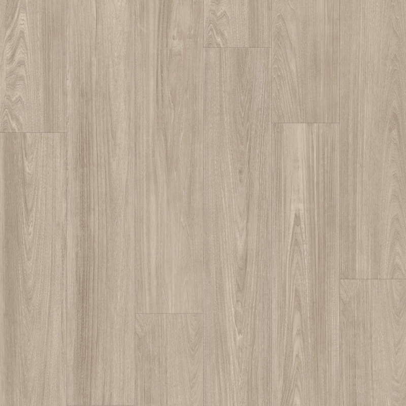 Realistyczna struktura drewna, odwzorowana dzięki wysokiej jakości nadrukowi i czterostronnemu fazowaniu, sprawia, że podłoga wygląda jak prawdziwa drewniana deska. To doskonały wybór do salonów, sypialni, biur, ale też butików czy eleganckich przestrzeni komercyjnych.