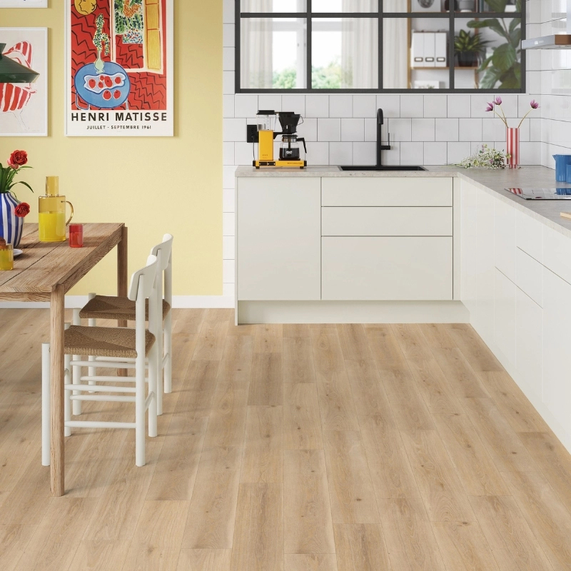 Model z kolekcji iD Inspiration Click Solid 30 to propozycja stworzona dla osób, które oczekują od podłogi więcej niż tylko powierzchni do chodzenia. Wybierasz nie tylko trwałość i łatwy montaż, ale także stylowy fundament dla wnętrza z charakterem. Wzór „Highland Oak Golden” łączy naturalną strukturę dębu z elegancką tonacją złocistego beżu — wnętrze zyskuje ciepło, wyrafinowanie i uniwersalną bazę, która pozwala na kreatywne zestawienia z meblami w metalu, czerni, szkła lub w ciepłej skórze.